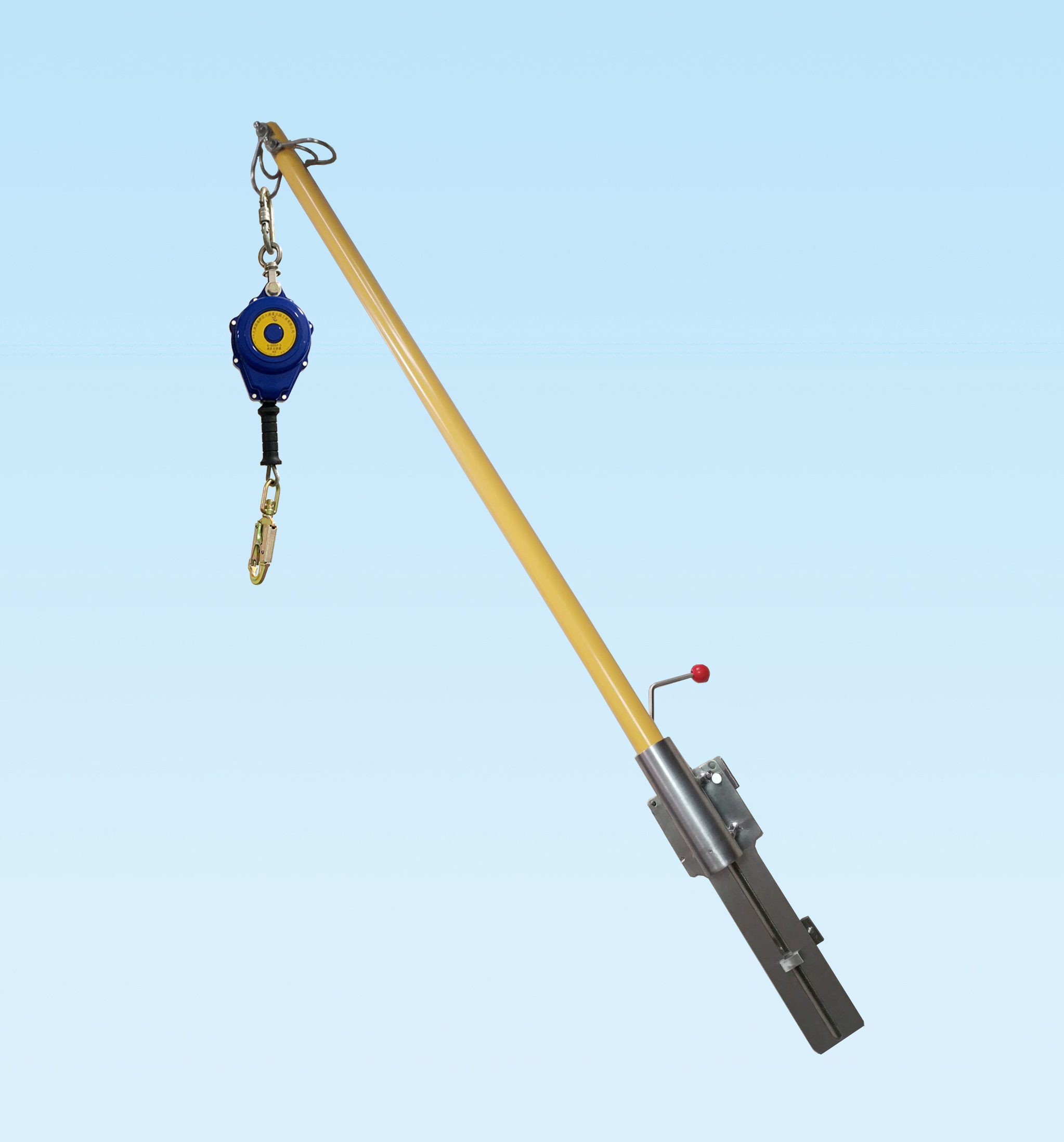 1;本裝置由固定底座、立桿、全身式安全帶、尾繩、組成。在井架安裝拆卸作業(yè)時(shí),井架左右兩扇各需一套,配套使用。