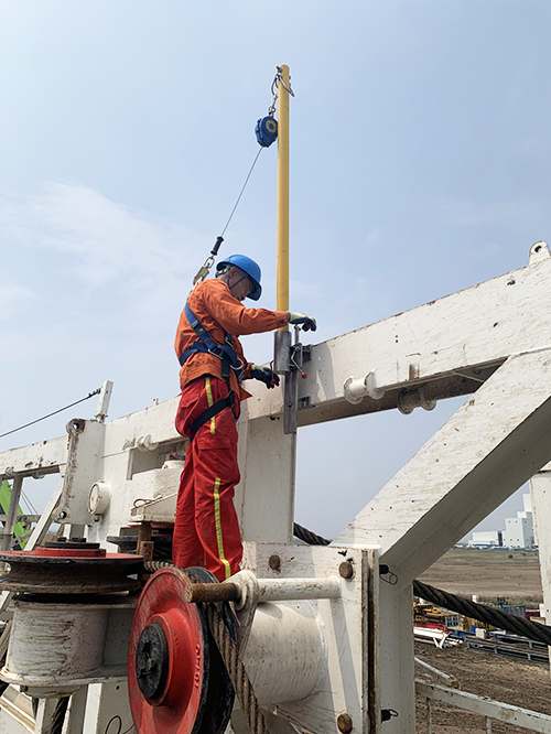 為防止墜落安全事故發(fā)生,鉆井隊(duì)使用井架拆裝防墜落懸掛器,可有效防止人員墜落事故發(fā)生,為井架拆卸安裝作業(yè)提供可靠的安全保障。